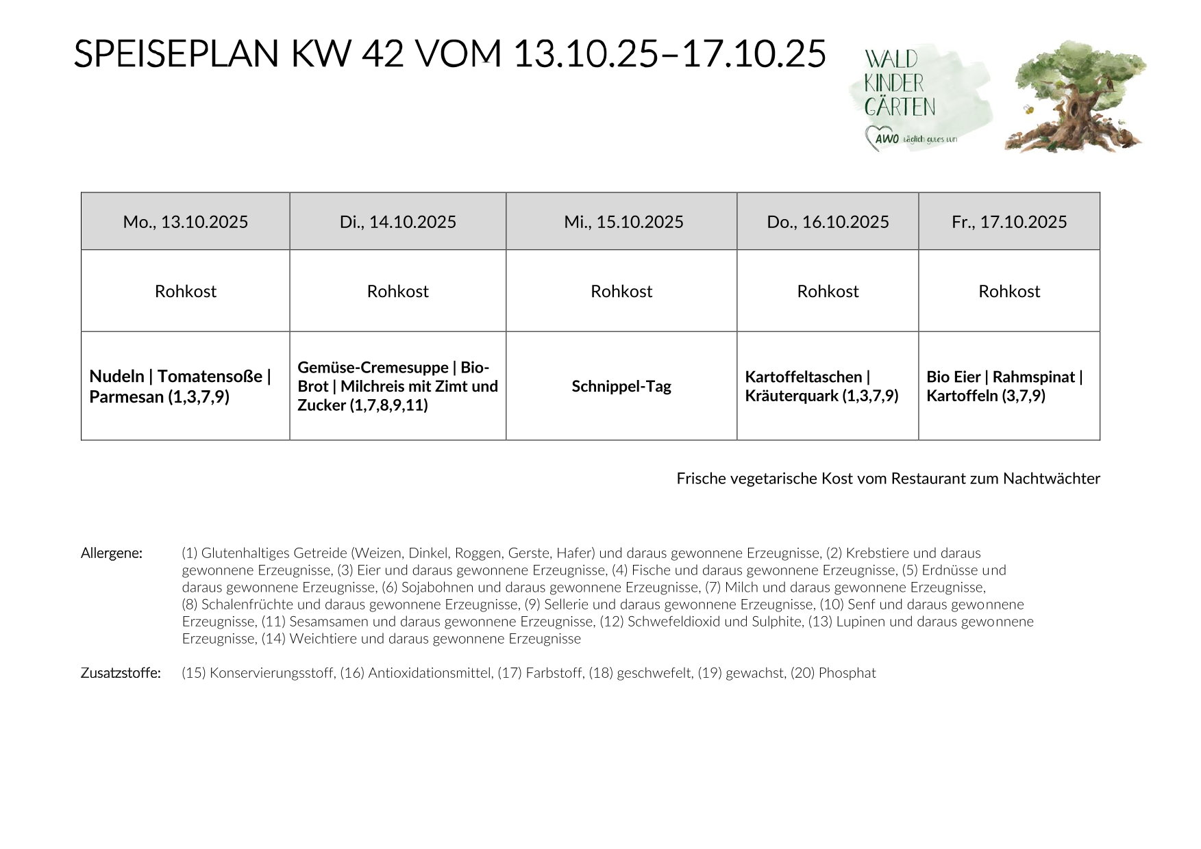 Hinweis: Die Mittagsversorgung ist ab dem 4. Geburtstag des Kindes möglich. Eine Versorgung ab dem 3. Geburtstag des Kindes ist nur nach Absprache mit der Fachbereichsleitung möglich.