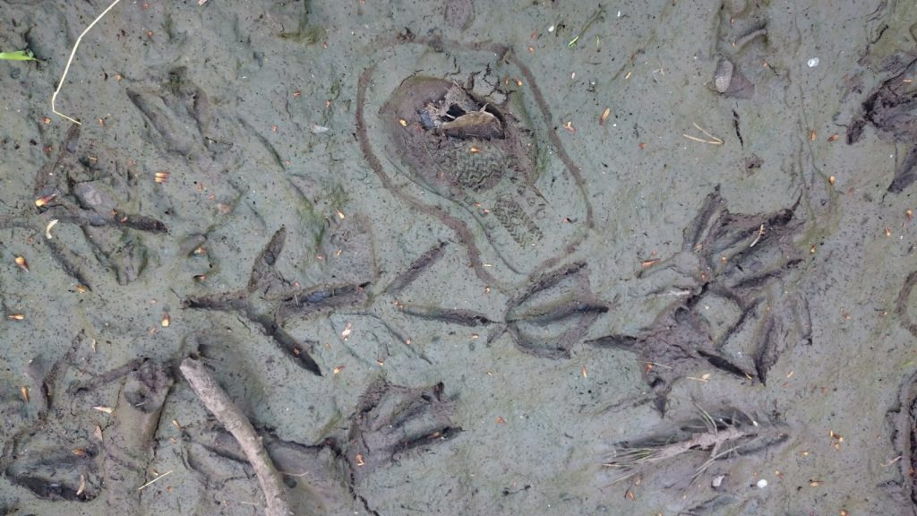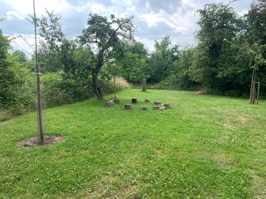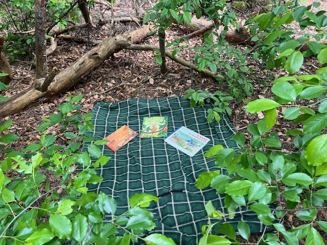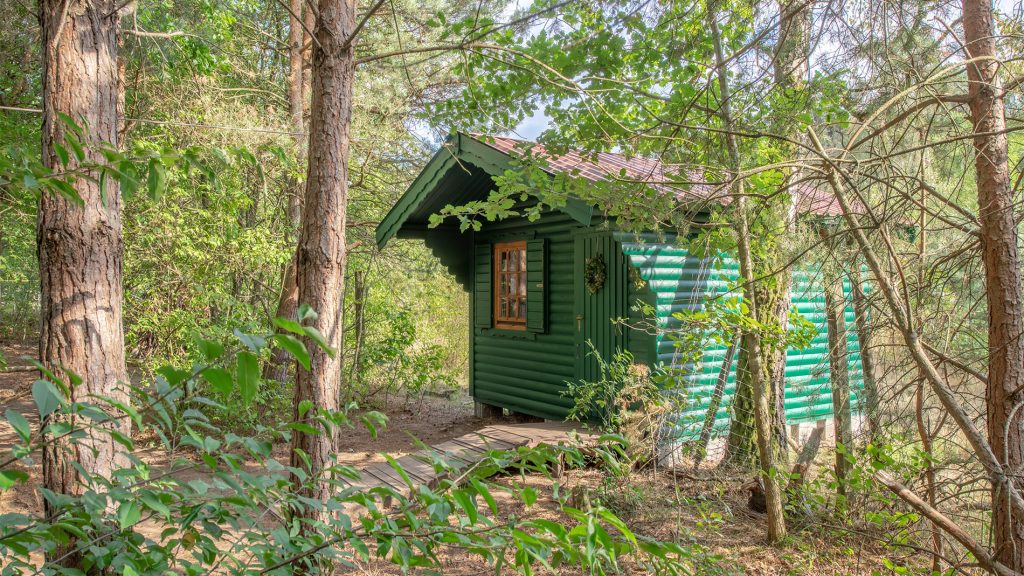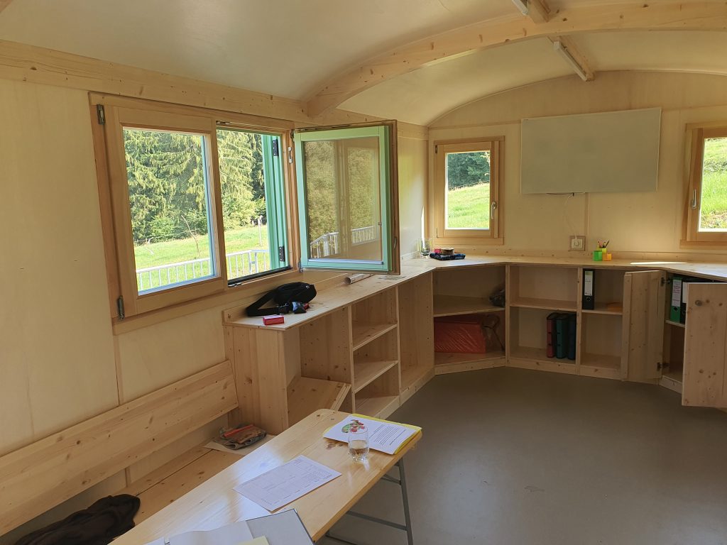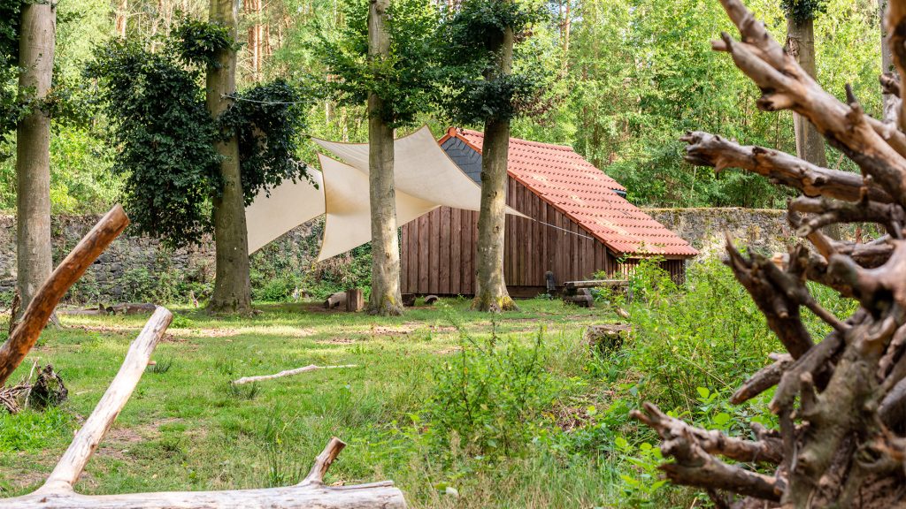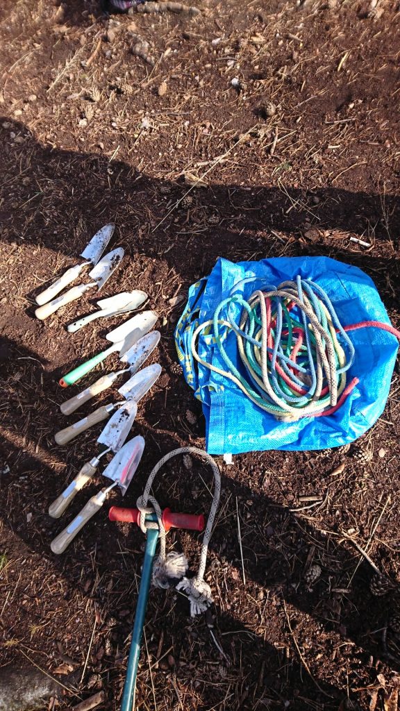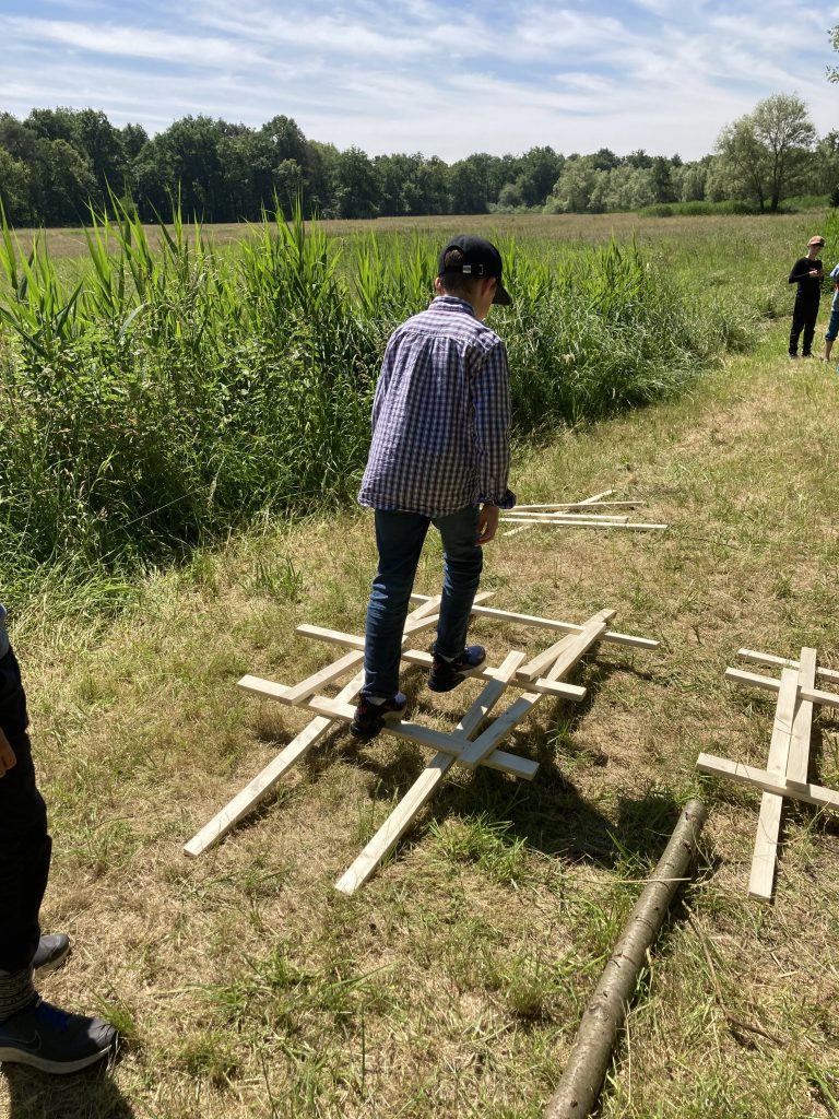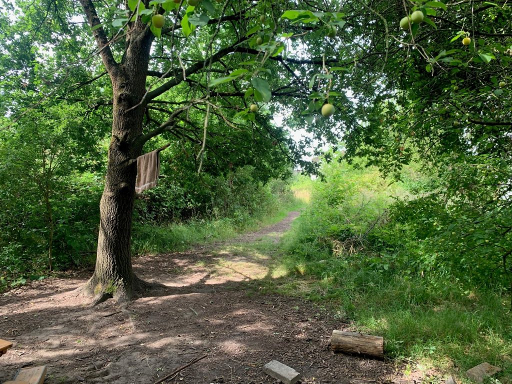 im lehmigen Matsch hüpfen, im Birken- und Farnwäldchen Nester und Verstecke bauen, im angrenzenden Bach spielen, auf Baumstämmen balancieren, Vögel beobachten, in der Hängematte den Blättern beim „Himmelkitzeln“ zuschauen und schaukeln, schnitzen, malen, werkeln, weben und mit Wolle basteln.