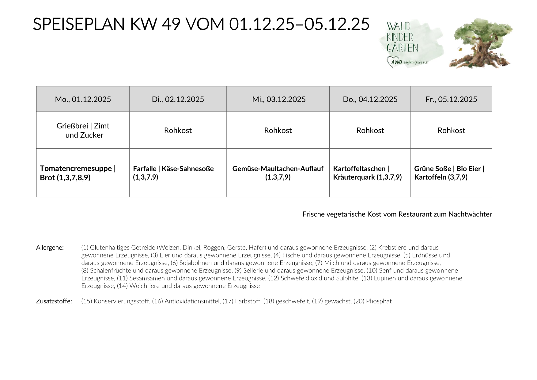 • Als naturnahe Wald-Einrichtung legen wir sehr viel Wert auf regionales, gesundes, nachhaltiges und vegetarisches Mittagessen.