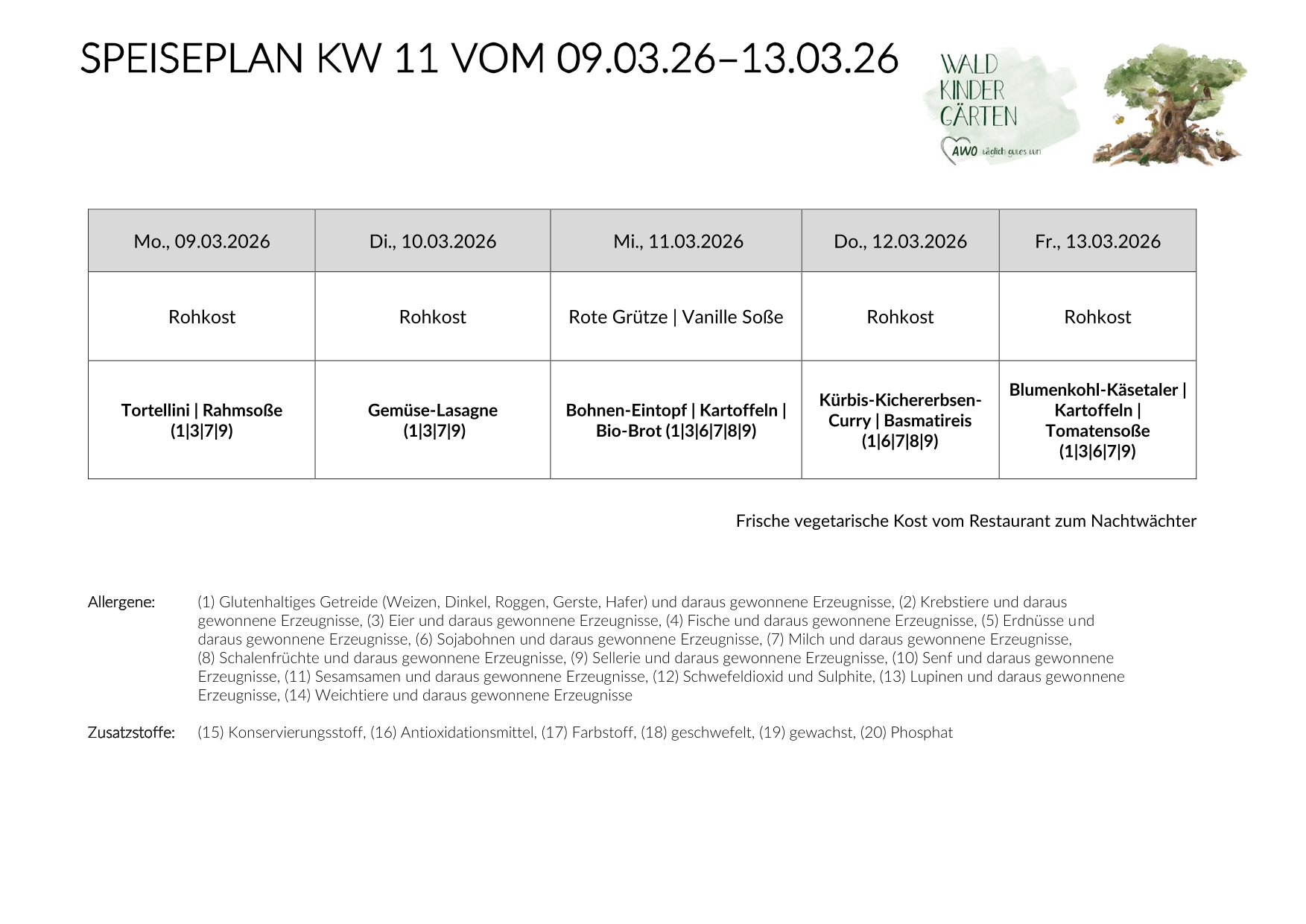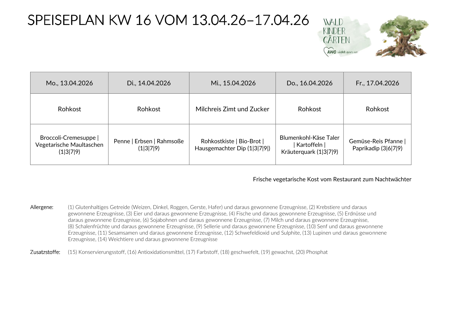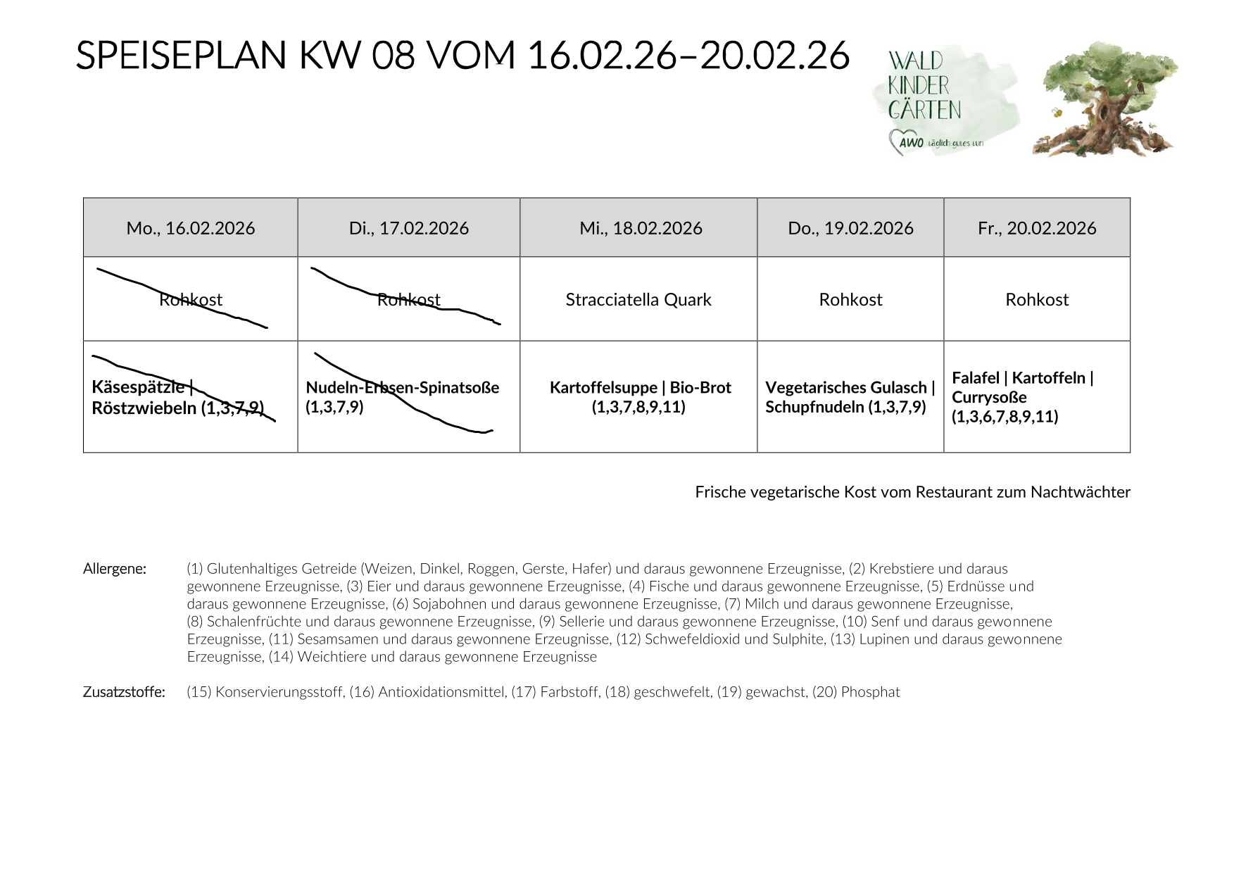 Jeden Mittwoch findet der „Schnippeltag“ statt, an dem insbesondere die „Wackelzähne“ das Essen zubereiten und Rohkost, wie Äpfel, Möhren Gurken und regionale „Schnippelkost“ für die Essenskinder vorbereiten. Im Herbst/Winter wird in manchen Gruppen, in denen eine Feuerstelle stehen kann, auch eine Kürbissuppe gemeinsam gekocht. So werden nicht nur Gaumenreize mit Geschmäckern der Gemüsewelt angesprochen, auch die motorischen Fähigkeiten sowie das Erfahren der Essenskultur und das echte Kochen und Zubereiten werden gemeinsam gelebt.